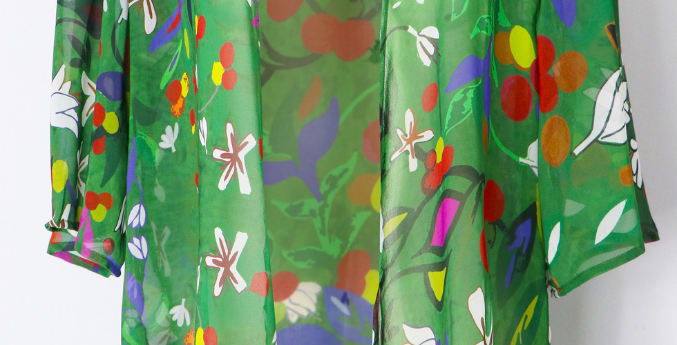 Inspirada no kimono japonês, essa peça que apresentamos aqui é uma homenagem a todas aquelas mulheres descendentes das famílias japonesas que chegaram ao Brasil no início do século XX para trabalharem na cultura de café.